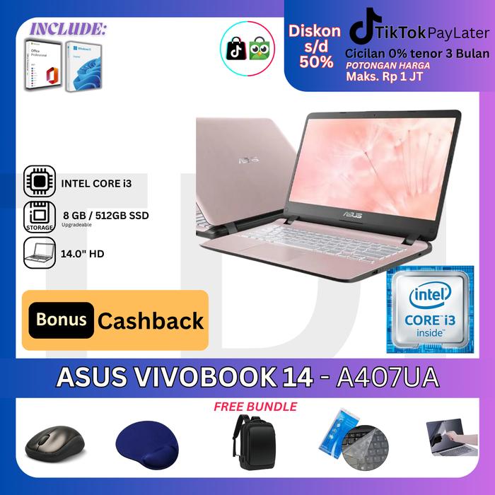 Asus Vivobook 14 A407Ua Intel Core I3 8Gb Ram 512Gb Ssd Intel Hd W11 Office 2021 - Gold, (Promo) 4Gb/1Tb Hdd