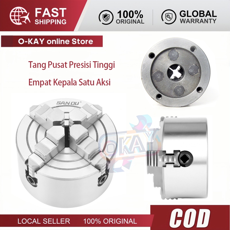 Chuck Mesin Bubut 3 Inci K72-80, 4 Rahang Independen dan Dapat Dibalik, Bahan Metal