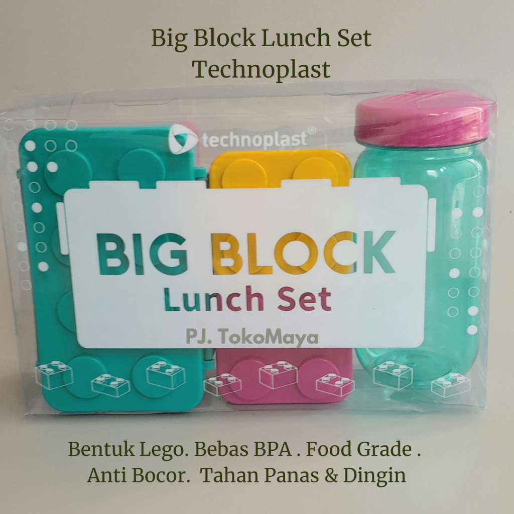 Tempat Makan Anak / Lunch Box Big Block Set Technoplast / Big Block Lego Lunch Box Set + Botol Minum / Tepak Makan Set /