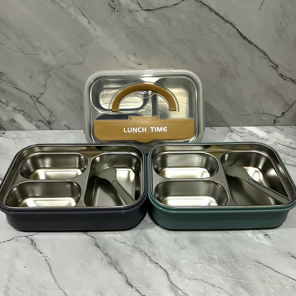LUNCH BOX 3 SEKAT STAINLESS / Kotak Makan Sekat Stainless / KOTAK MAKAN ANAK STAINLESS PREMIUM / kotak bekal anti tumpah