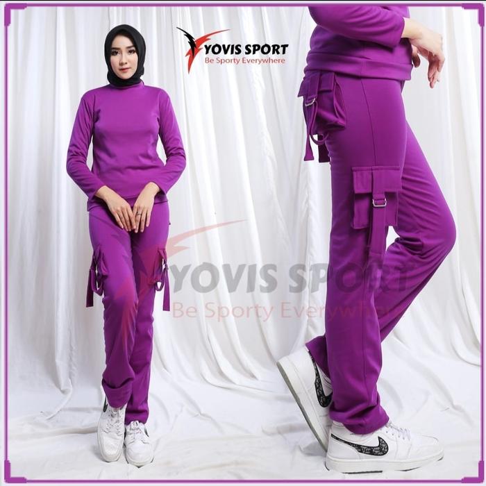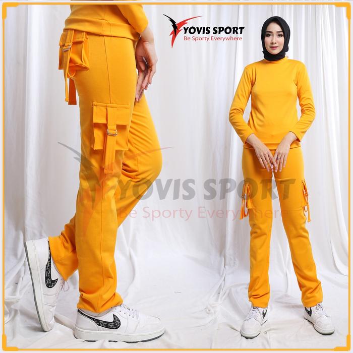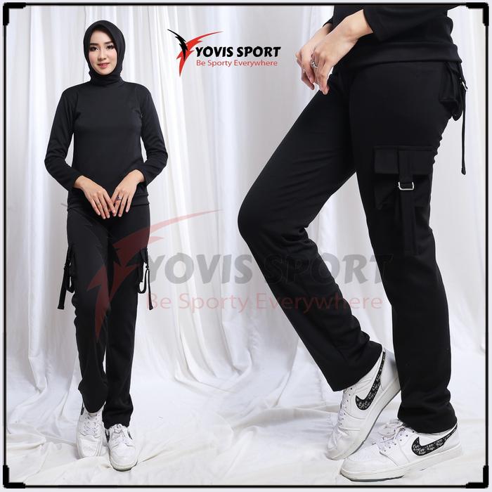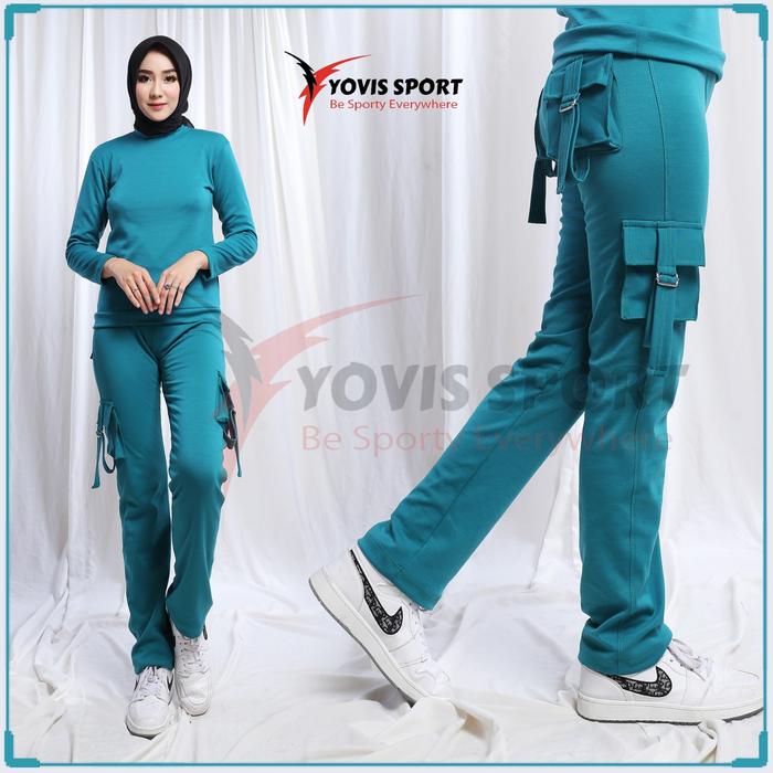 Celana Senam Cargo Wanita / Celana Senam Cargo Yovis Sport Olahraga Wanita - Biru, L