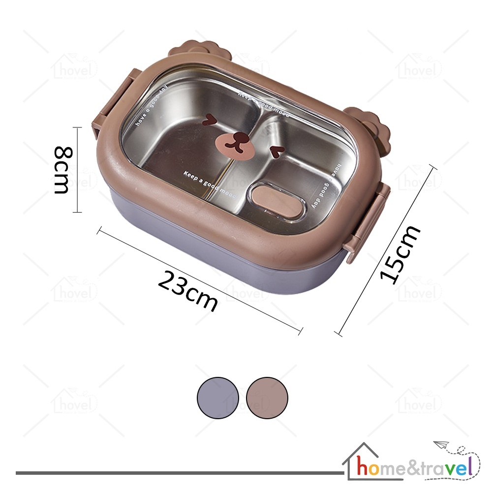 HOVELSHOP Tempat Bento Anak Bekal Makan Lucu Lunch Box Beruang Stainless Steel Karakter 2 Sekat