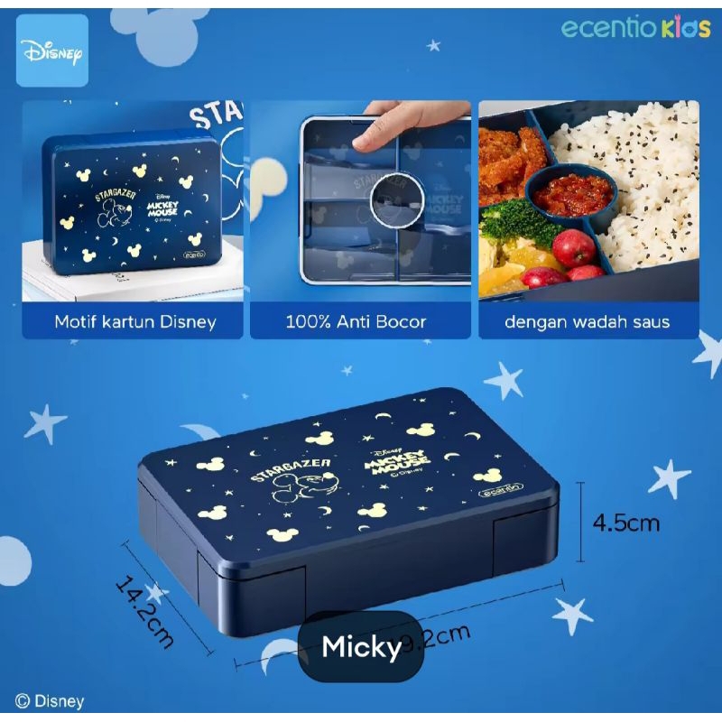 Ecentio Kotak Bekal /Kotak Makan Siang Anak Anti Tumpah Varian Original Disney.