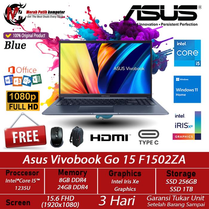 Laptop Asusu Vivobook Go 15 F1502Za Intel Core I5 24Gb 1Tb Ssd 15.6 Fhd Windows 11 Ori - I3 Black New 1Tahun, 8Gb/128Gb