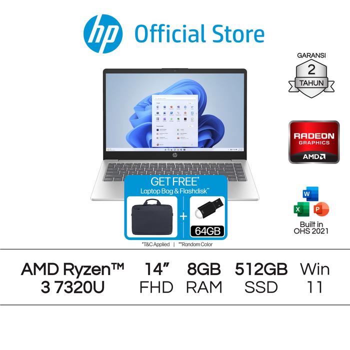Laptop Hp Amd Ryzen 3 Radeon 8Gb Ram 256Gb / 512Gb Ssd Gold / Silver Windows 11 Home 14 Inch Garansi 2 Tahun Official -