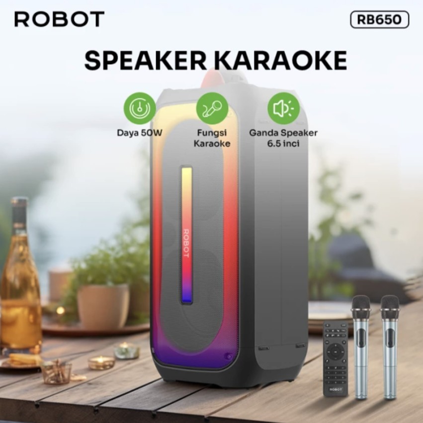 ROBOT Speaker Karaoke 50W Dual Microphone Wireless RGB Light Bluetooth 5.0 Speaker Bluetooth 6.5 Inchi RB650 Original -