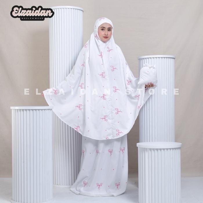 ELzaidan-Mukena Dewasa Travelling 2in 1 Coquette Bordir Pita - Putih