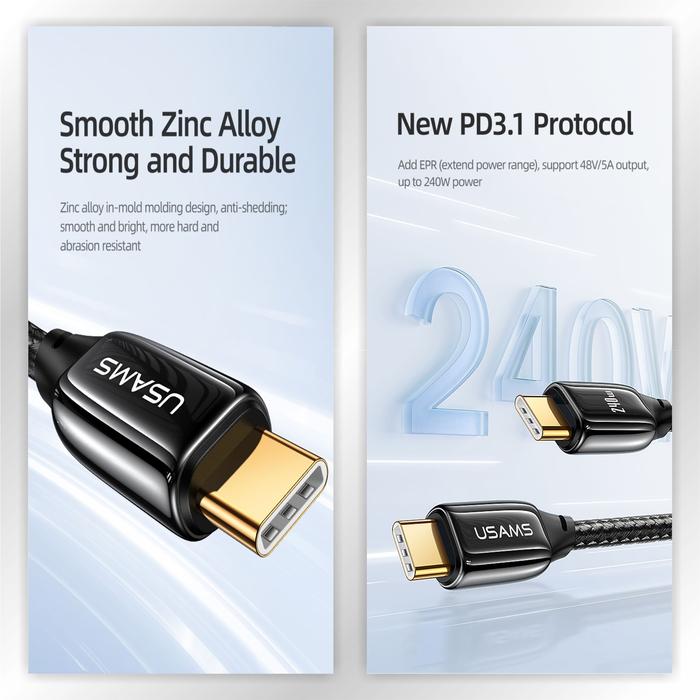 USAMS U82 Kabel Data Type C to Type C PD3.1 240W Zync Alloy 1.2m