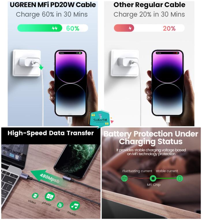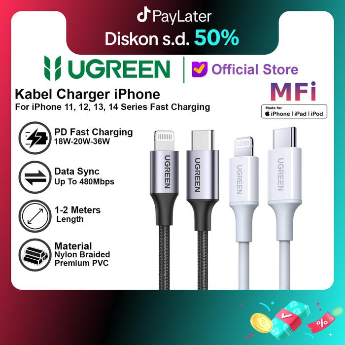 Kabel Data UGREEN Untuk iPhone 11,12,13,14 PD Type C To Lightning Fast Charging