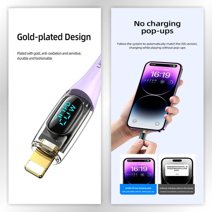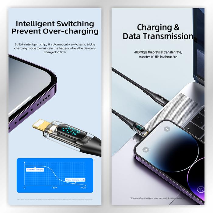 USAMS Shadow Series Kabel Data C to L PD 20W Transparent Digital Display
