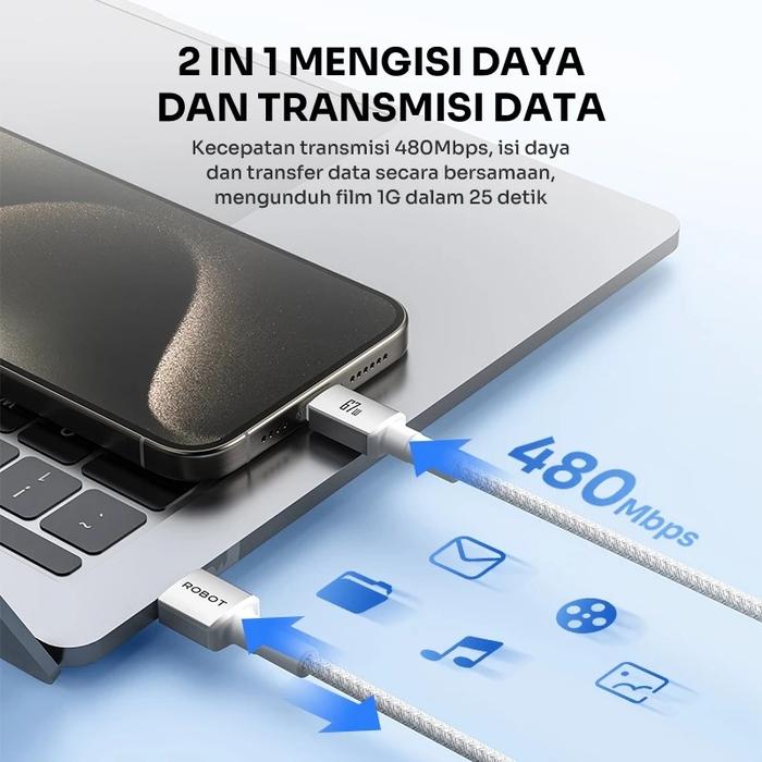 ROBOT Kabel Data RSQC100 Fast Charging USB to Type C 67W Data Cable Original - Garansi 1 Tahun