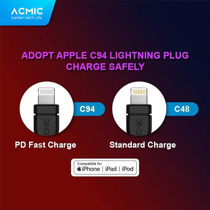 ACMIC PDL100 USB Type C to Lightning Cable PD Fast Charging iPhone 1M