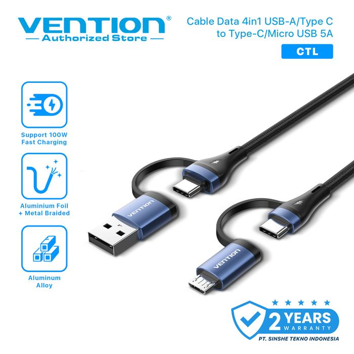 Vention Kabel Data Charger 4in1 USB A Type C to Type C Micro USB 5A Fast Charging Cotton Braided