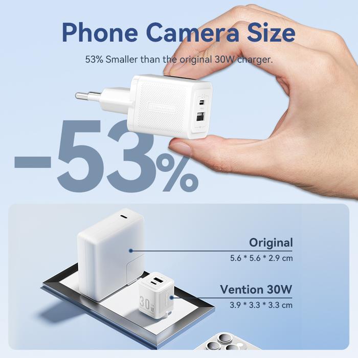 Vention USB A+C GaN Charger with C to C Cable 20W 30W Fast Charging