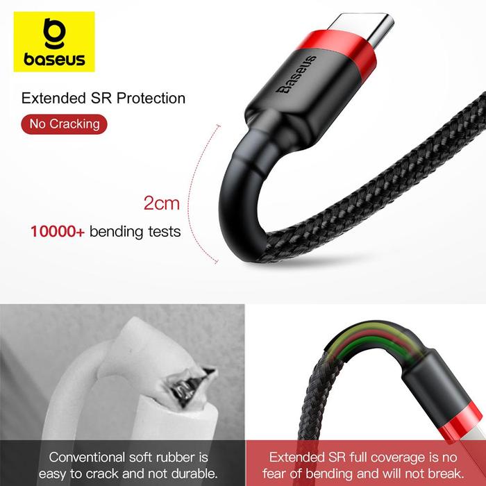 Baseus cafule Cable USB For Type-C 2A/3A 1Meter/2Meter Red+Black Kabel Charging Type-C Wire Grey
