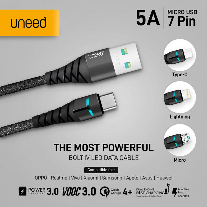 UNEED Bolt IV LED Kabel Data Type C PD QC 4+ 3.0 / VOOC Max 5A - UCB41