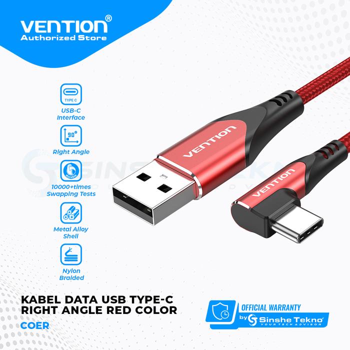Vention Kabel Data Type C Right Angle Elbow Quick Charge Fast Charge - Cocok Buat Gamer Sejati