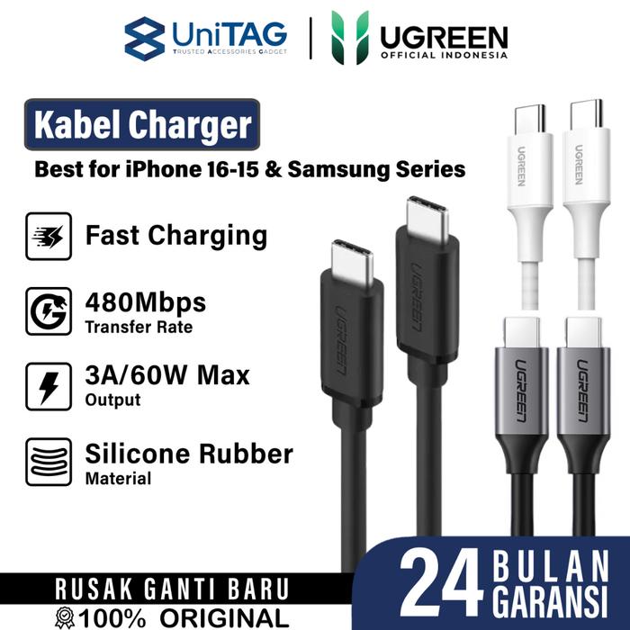 UGREEN Kabel Data Fast Charging for iPhone 16 15 Pro Max Plus Samsung Charger USB Type C to Type C