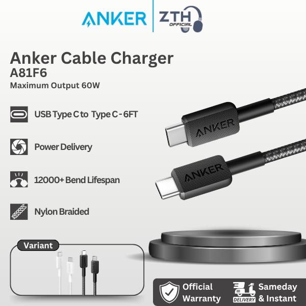 Anker 322 Kabel Charger 60W 3A USB Type C to C Nylon Cable 6FT - A81F6