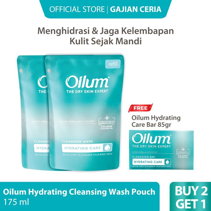 Beli 2 Oilum Hydrating Care Pouch (Refil) Gratis 1 Oilum Hydrating Bar 85gr Sabun Mandi Cair Kulit Kering