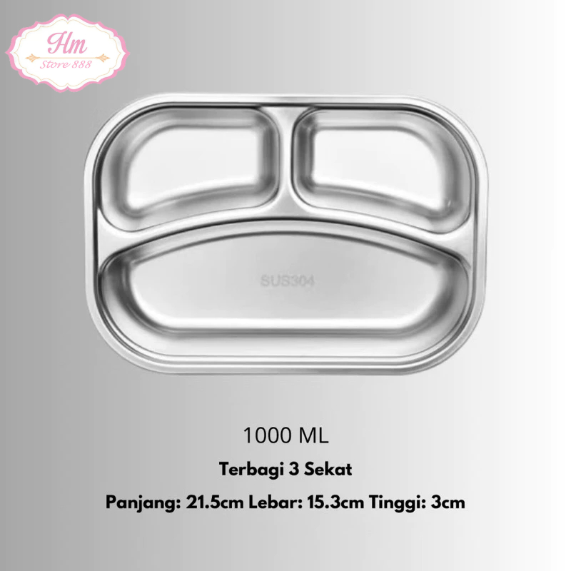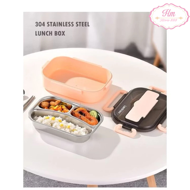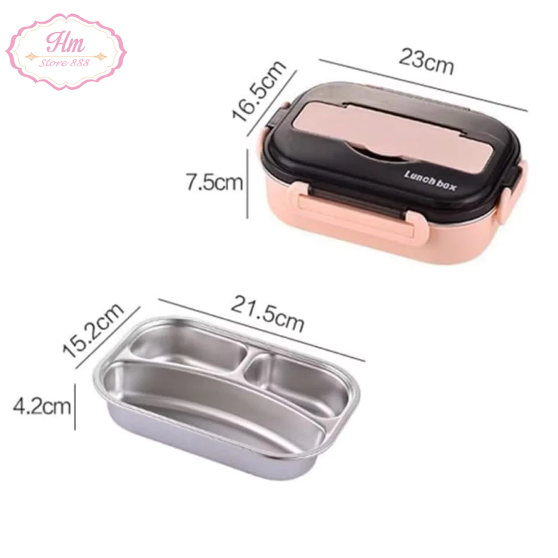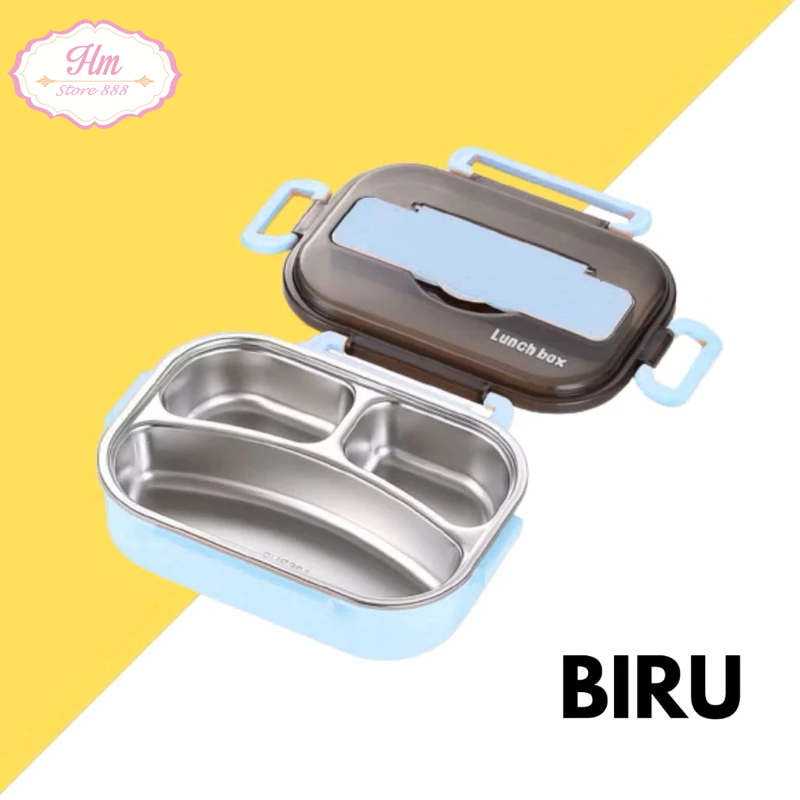 HM - Lunch Box Kotak Makan Premium Stainless 304 Food Grade ( Gratis alat Makan)