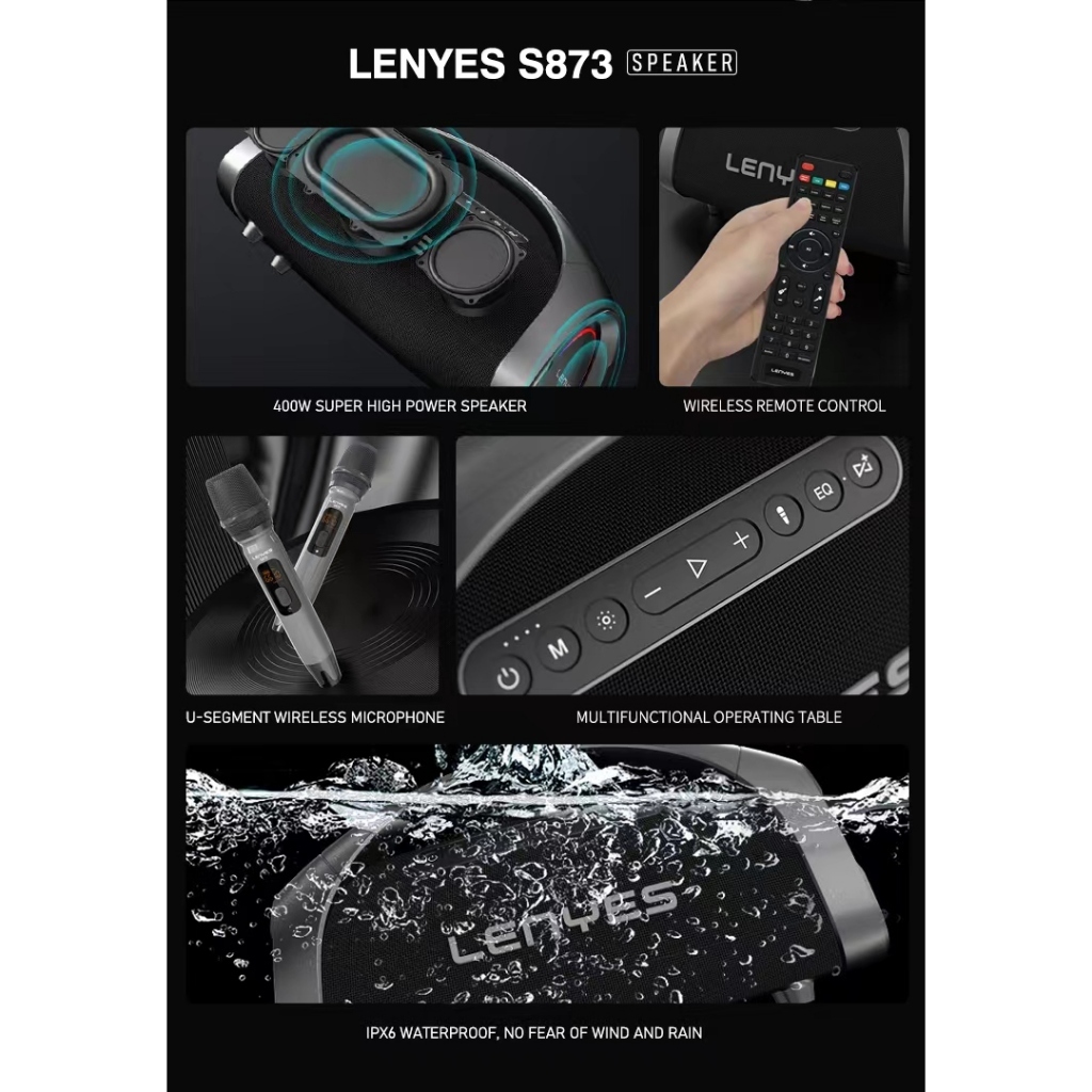 LENYES S873 400W Outdoor KTV KARAOKE Wireless Speaker + HD Microphone Karaoke Bluetooth 5.3 DSP High Power Bass Subwoofe