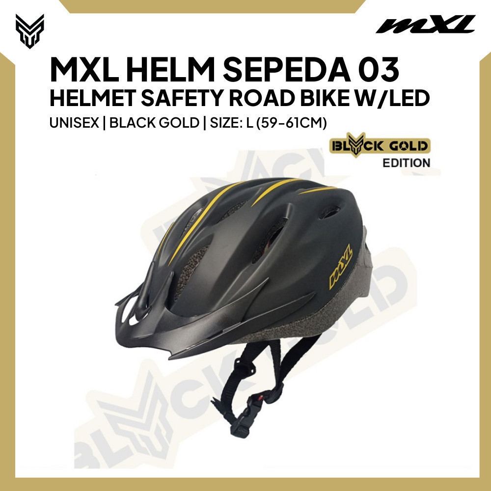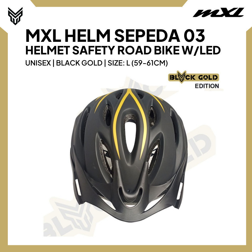 MXL Helm Sepeda dengan LED Bicycle Helmet 03 Black Gold Pelindung Kepala Unisex Cycling