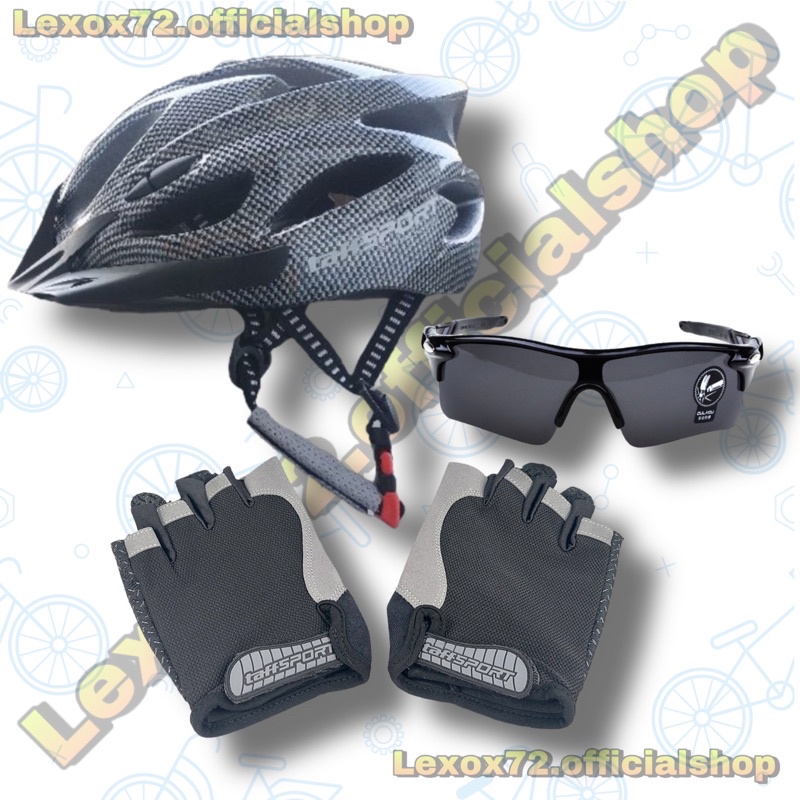 () Helm sepeda taffsport MTB roadbike / paket 3 item murah - MERAH/CARBON