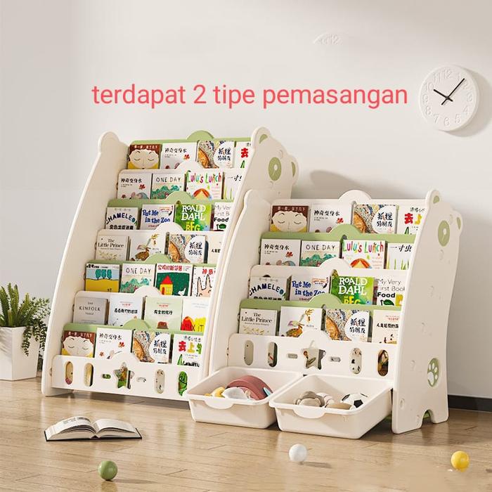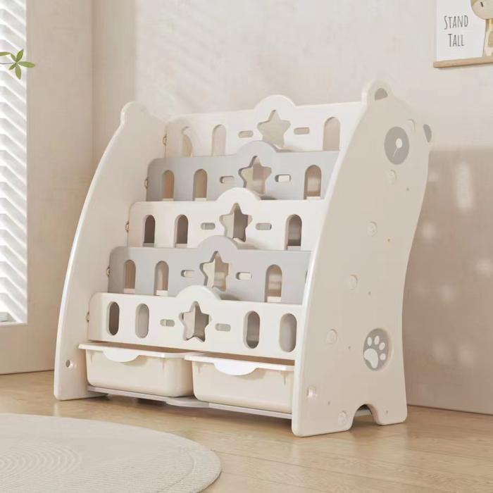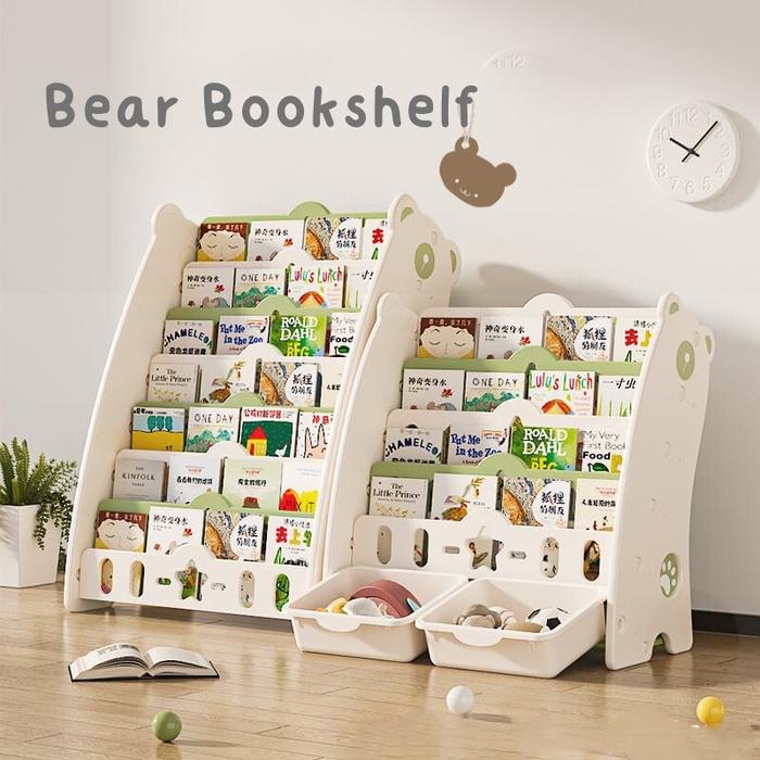 RAK BUKU PUTIH 5 SUSUN BEAR/BERUANG/RAK BUKU DAN MAINAN/RAK BUKU PUTIH - WHITE GRAY+LACI