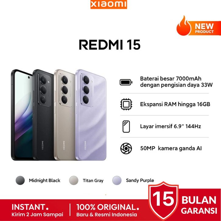 [Mall] Xiaomi Redmi 15 (8/128) (8/256) Baterai besar 7000mAh | Ekspansi RAM hingga 16GB Garansi Resmi