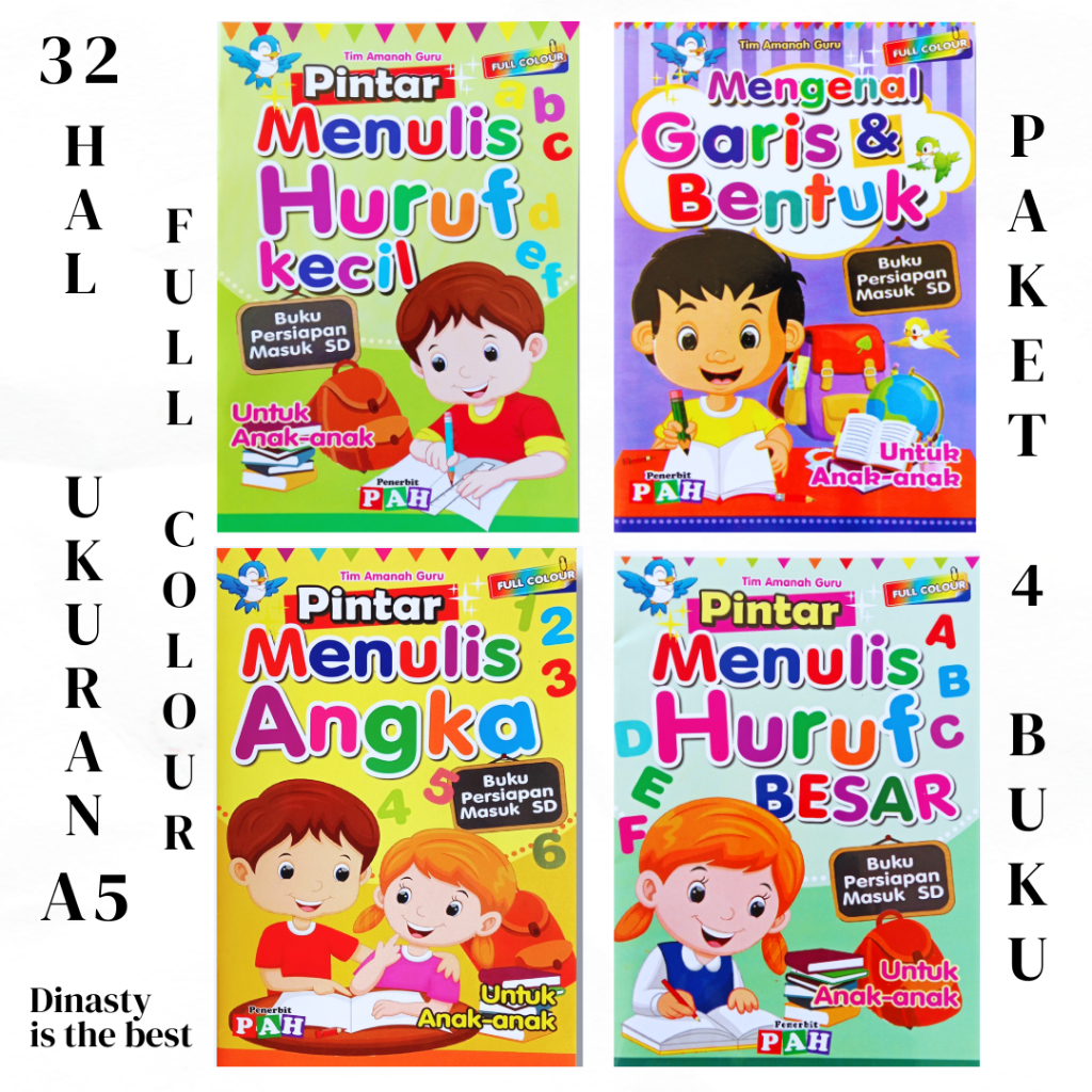 PAKET 4 BUKU AKTIVITAS MENGENAL GARIS DAN PINTAR MENULIS HURUF DAN ANGKA/ISI FULL COLLOUR/PAH