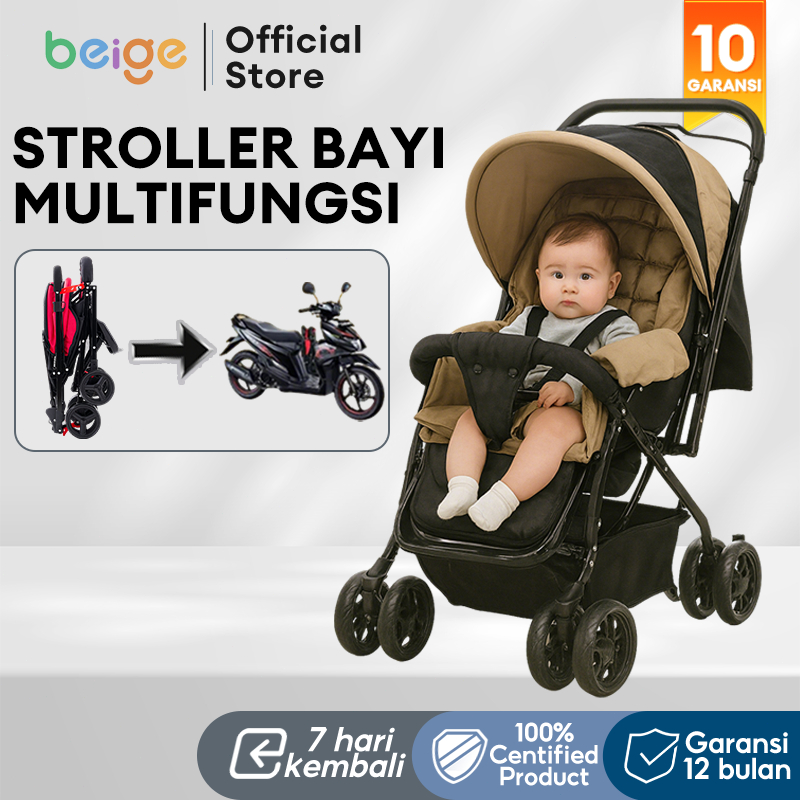 BEIGE Stroller Bayi Lipat Ringan 2 Arah & Mudah Dibawa Cocok untuk Usia 0-8 Tahun