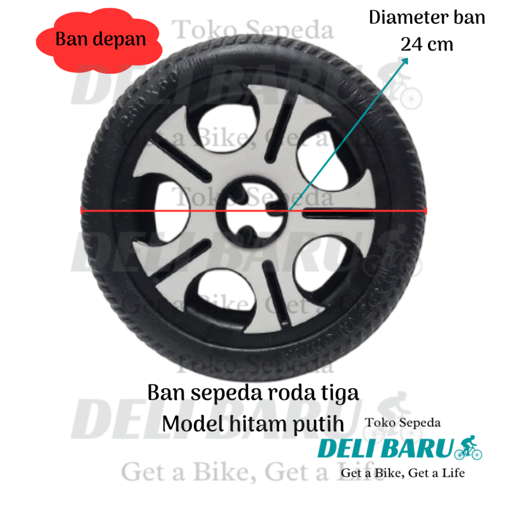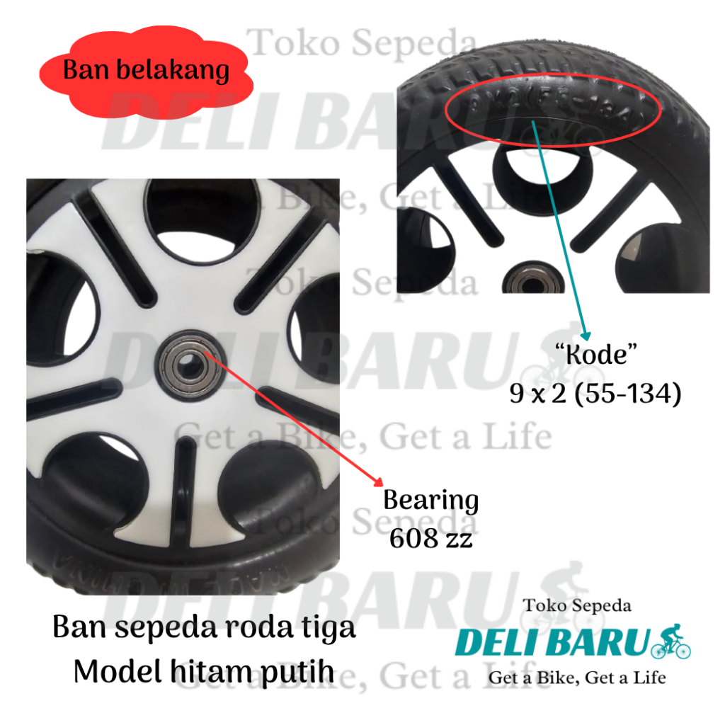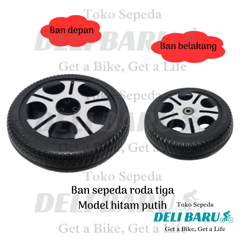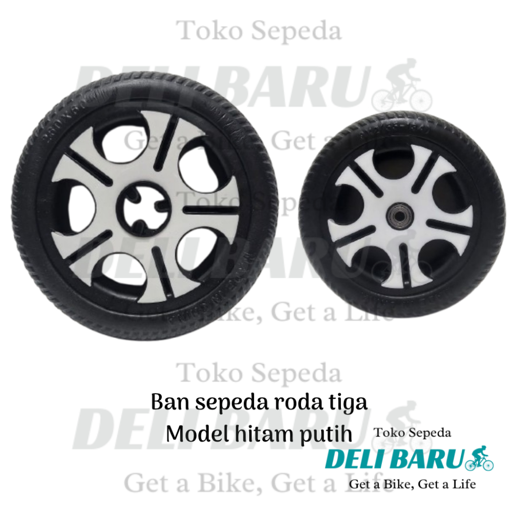 Delibaru Ban sepeda roda tiga depan 260 x 60 atau belakang 9 x 2 bearing 608zz motif hitam putih