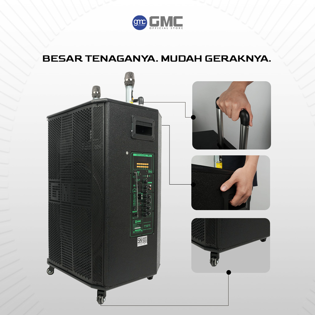 GMC Speaker 899V – Professional Line – Speaker Karaoke Bluetooth 18” – 500W, 2 Mic Wireless UHF