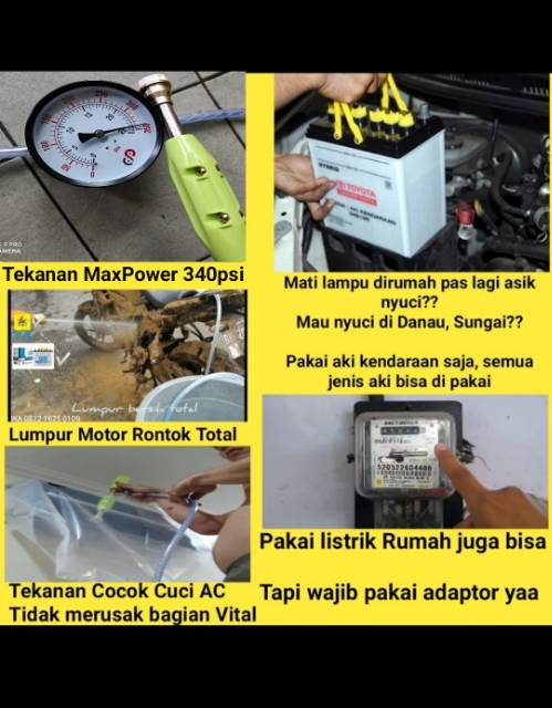 Alat Cuci Motor & Mobil & AC & Tanaman Pompa Air Mini DC 340 PSI Portabel Berkualitas Tinggi