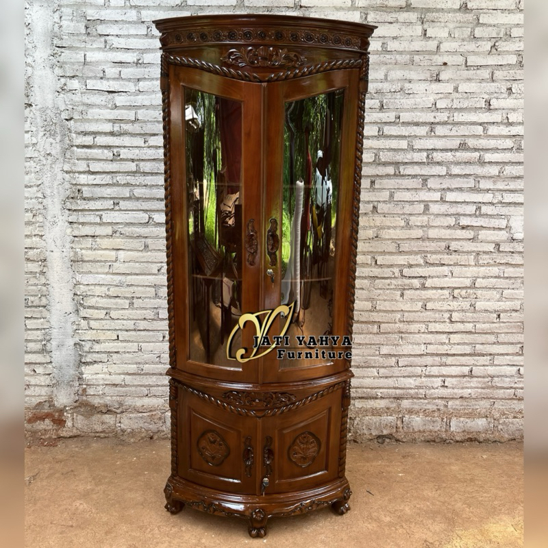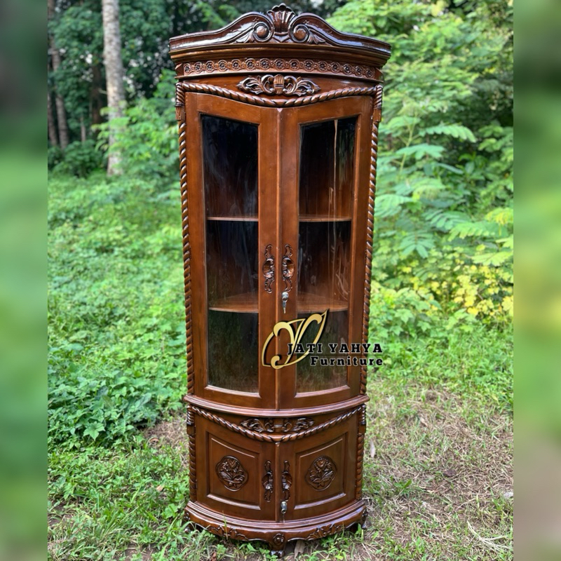 Lemari sudut lemari hias sudut jati lemari sudut tambang P 90 L 58 T 2m READY STOK LANGSUNG SIAP DIKIRIM