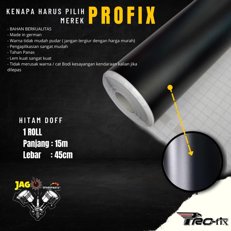 HARGA 1 ROLL skotlet profix hitam dop panjang 15meter x lebar 45cm