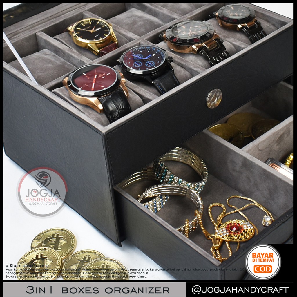 Box Kotak Jam Tangan Jumbo Isi 8 Mix Laci Tempat Perhiasan Susun / Box Penyimpanan Jam / Watch Box