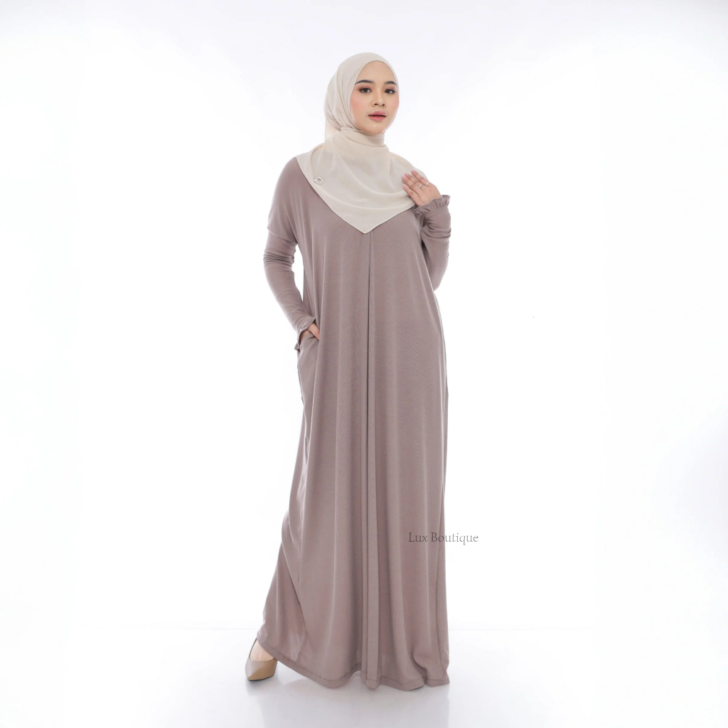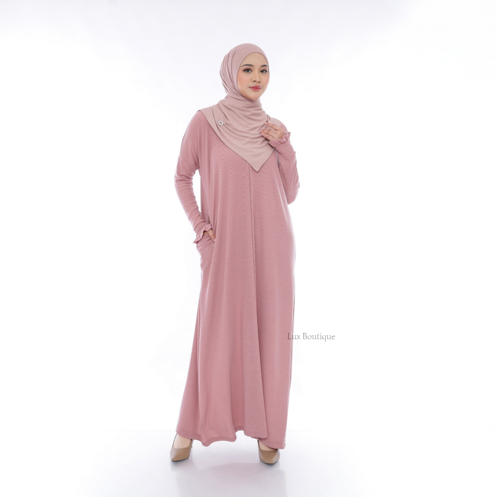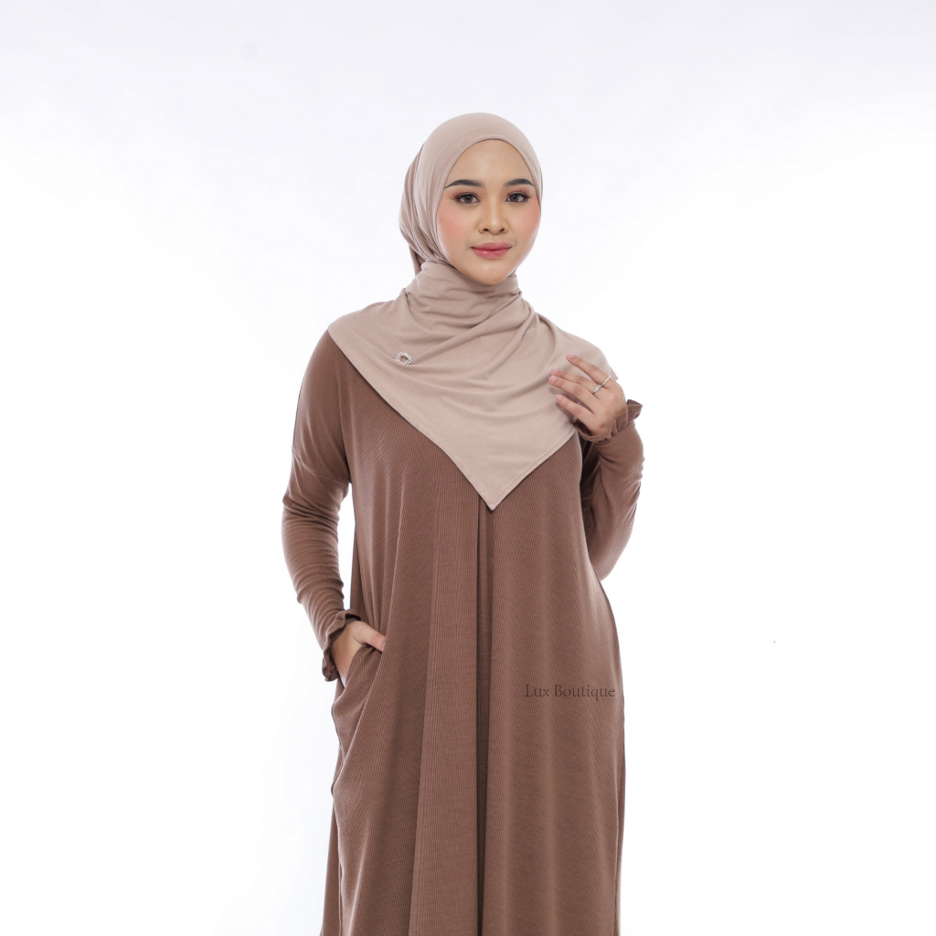 Andini Dress Gamis Abaya Knit Basic Semi Batwing
