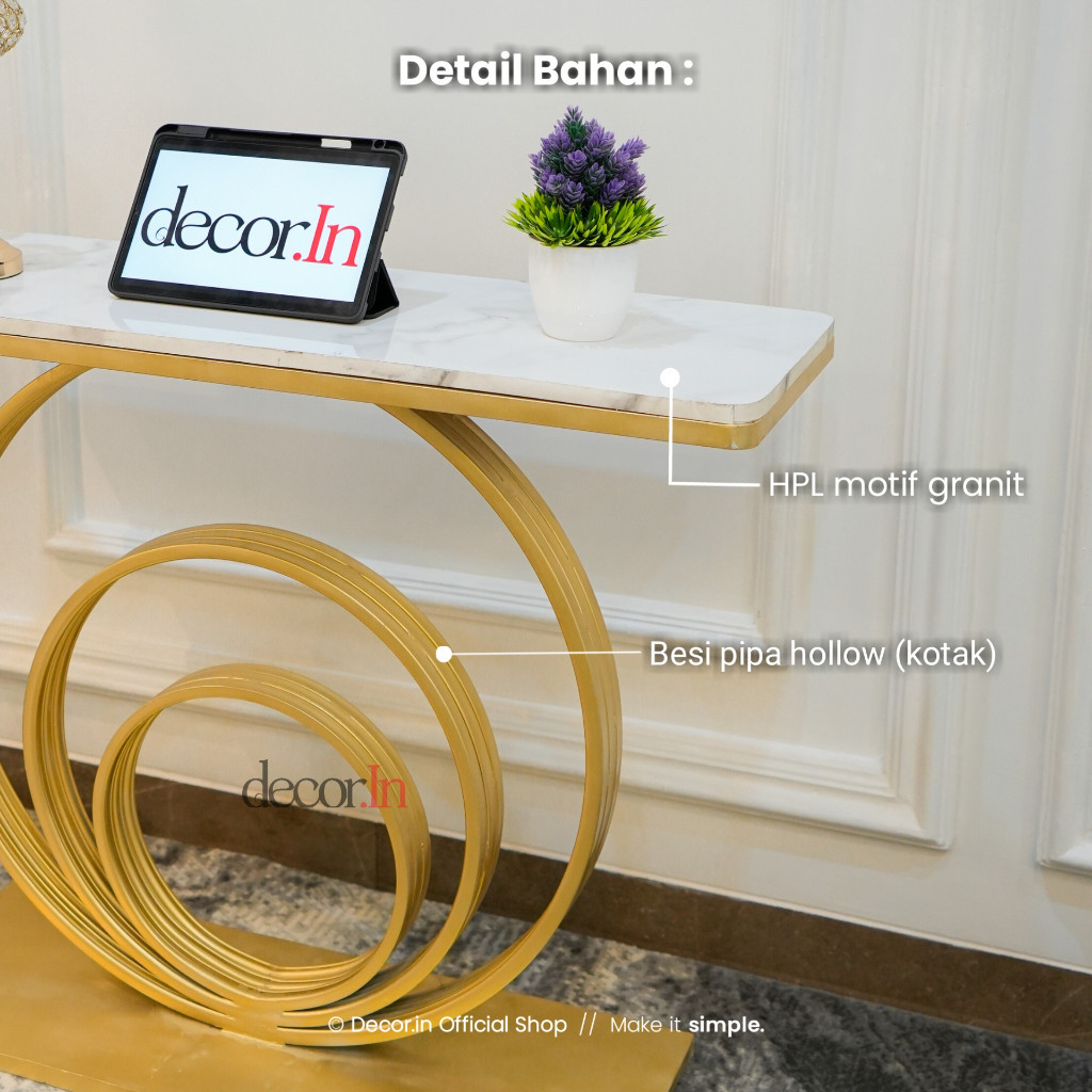 [Star] Decorinesia Meja Console Minimalis Ruang Tamu Circle| Meja Foyer Industrial Top Hpl Motif Marmer