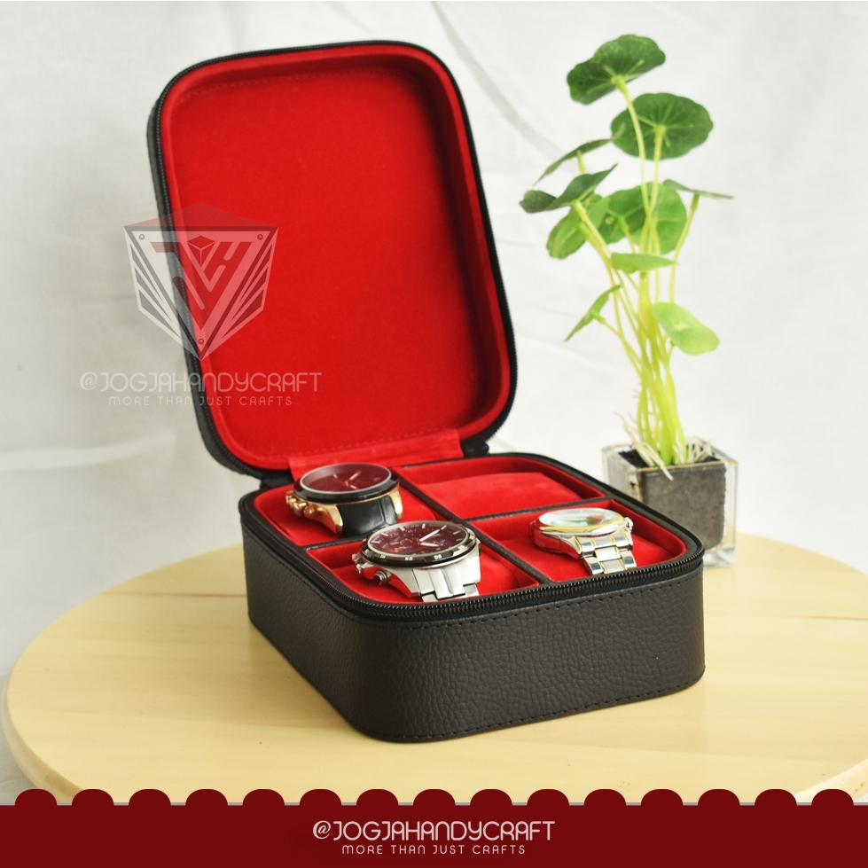4 Slots Travel Watch Box Jumbo Resleting / Tempat Jam Tangan / Kotak Jam Tangan / Box Jam
