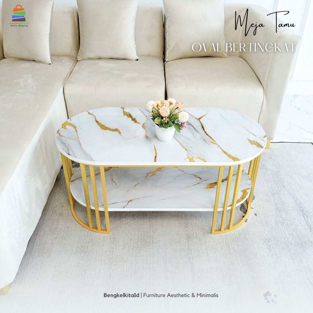 [Star] Milea Meja Tamu Oval Minimalis Mewah Meja Ruang Tamu Minimalis Meja Tamu Aesthetic Meja Sofa