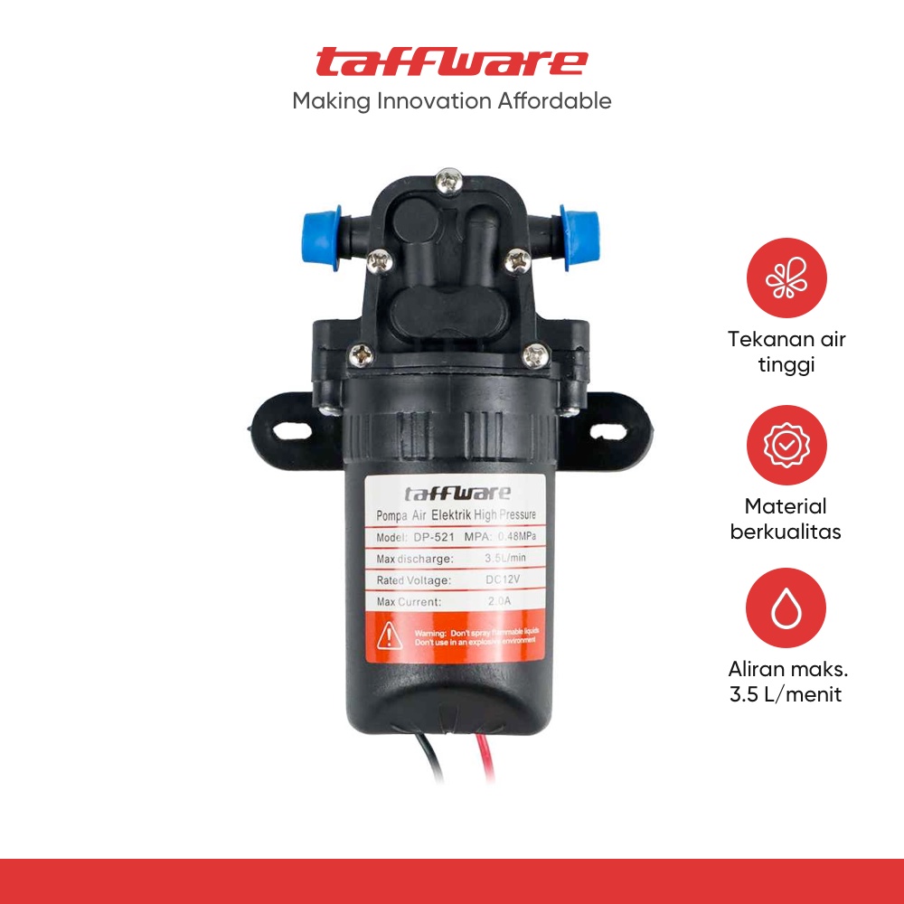Taffware Pompa Air Elektrik High Pressure 12V 70PSI 3L/min - DP-521