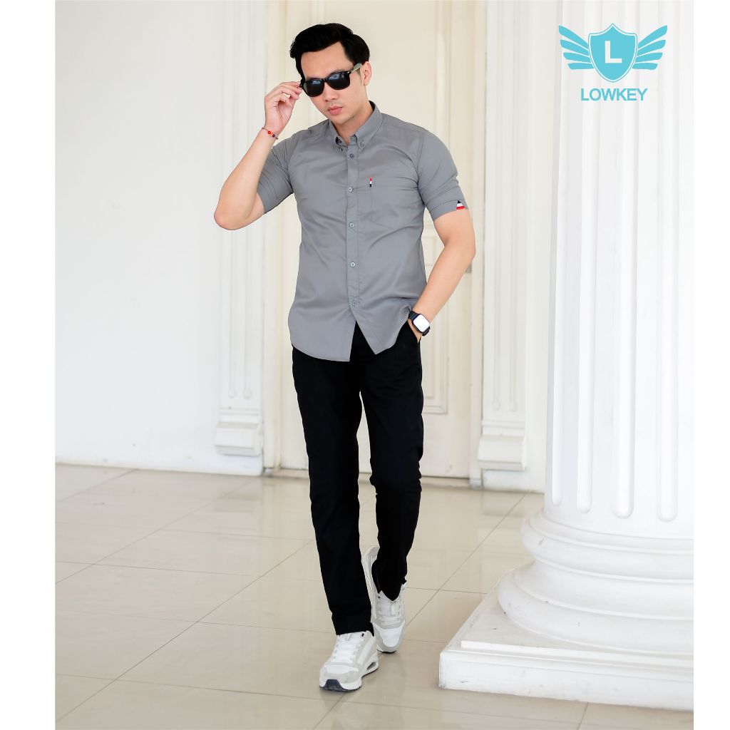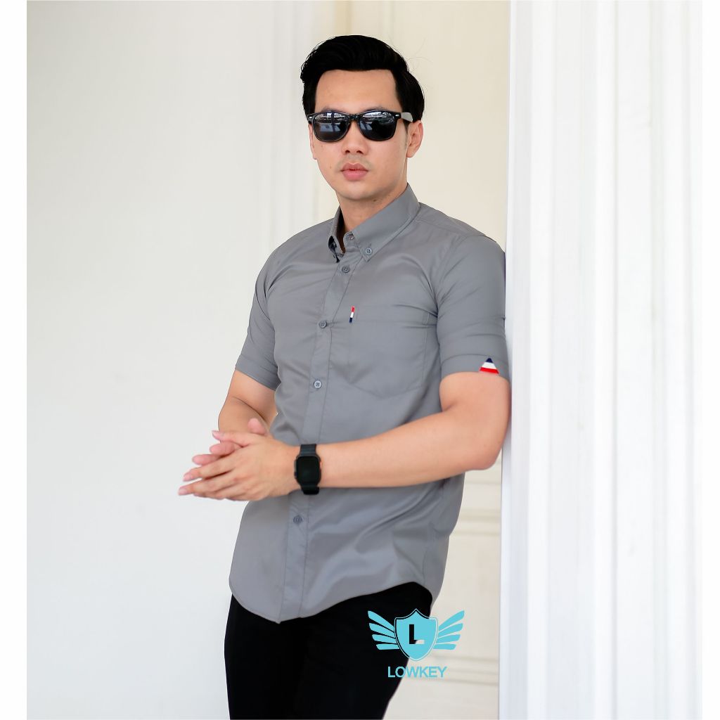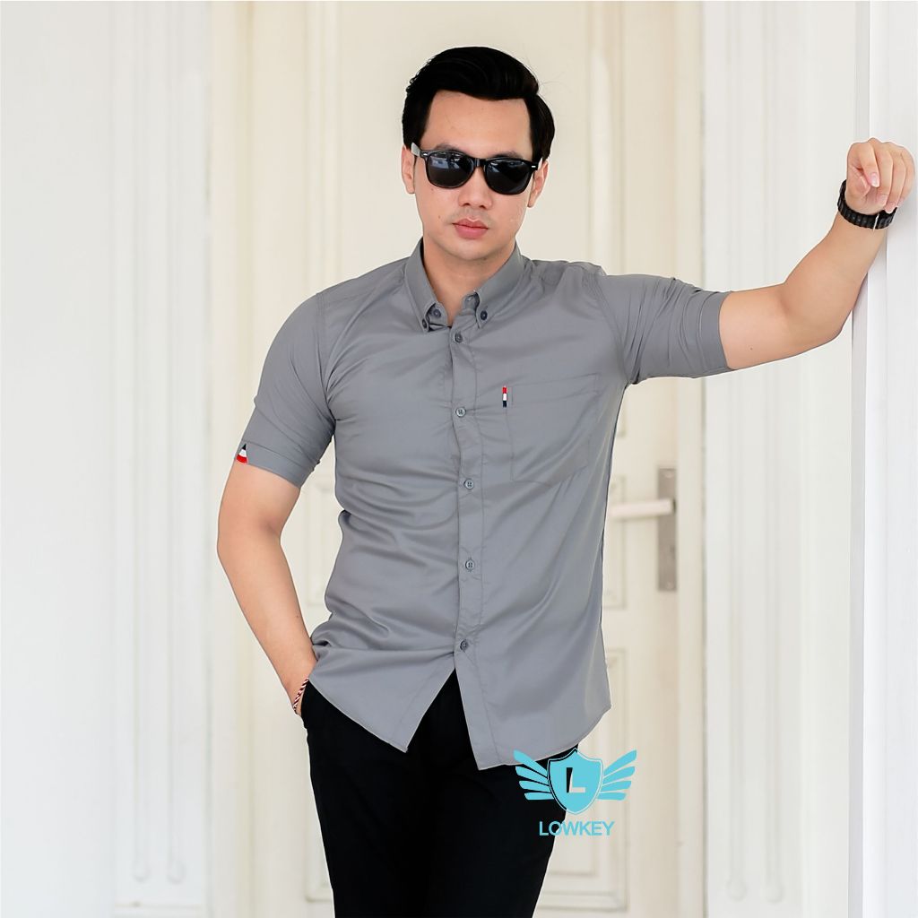 [Mall] Kemeja Pria Slimfit Lowkey Premium PD 18 Abu-Abu | Hem Atasan Kemeja Baju Laki-laki/Cowok Slimfit Kemeja Pria Pendek Kemeja Cowok Dewasa Kemeja Cowok Keren Kemeja Pria Slimfit