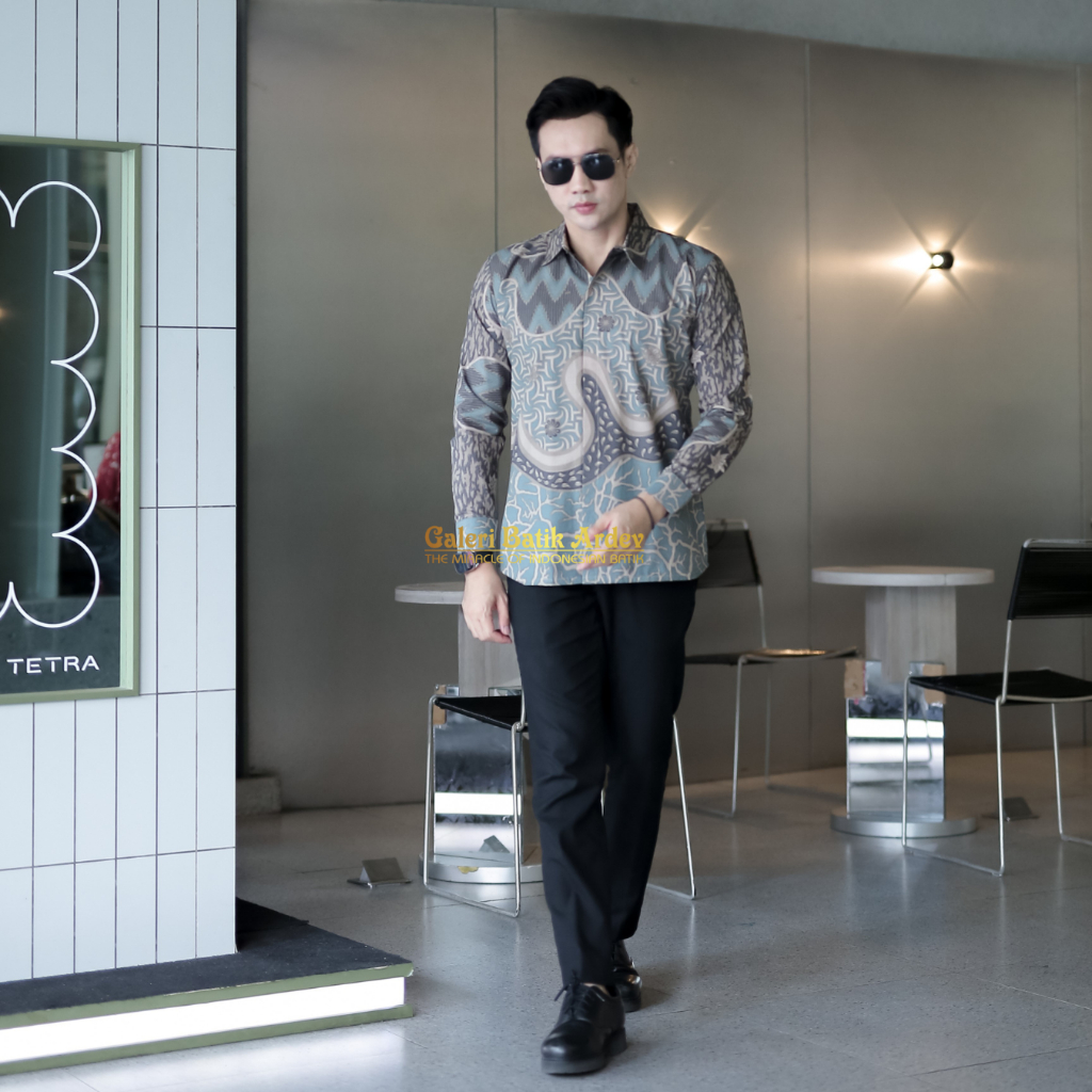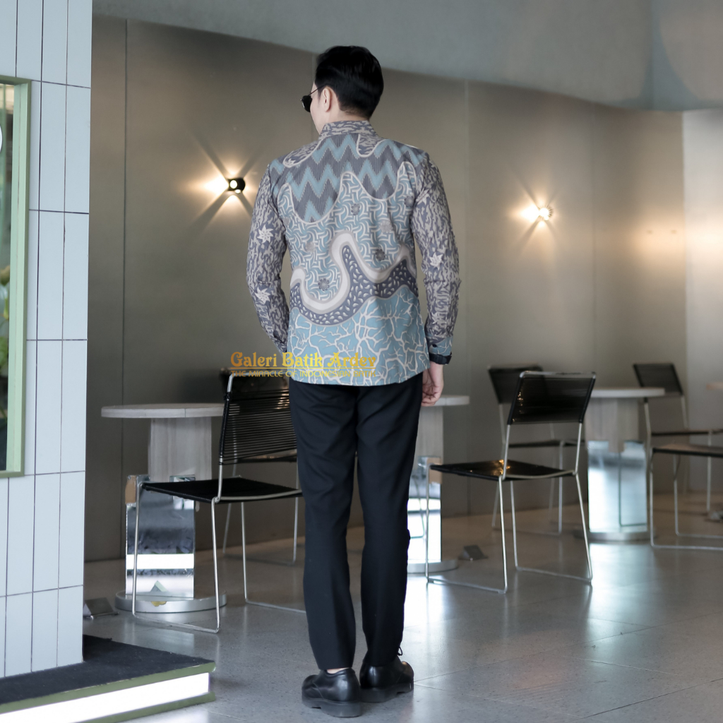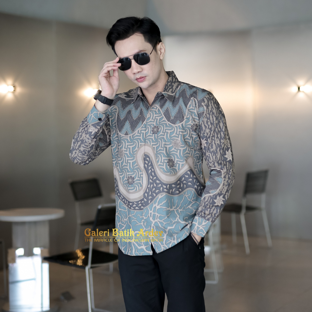 [Mall] Galeri Batik Ardev - Nirwasita Kemeja Pria Slim Fit Lengan Panjang Warna Biru Lapis Furing