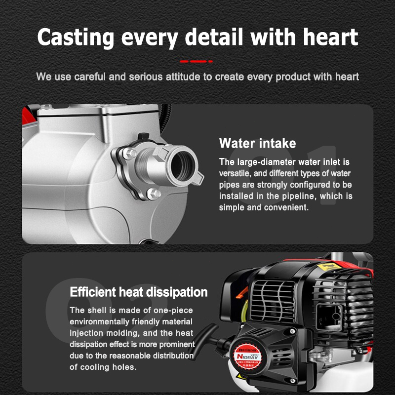 【】Water Pump Bensin, Pompa Self-priming 7HP, Pompa Air Pertanian Daya Tinggi 2-tak, Pompa Air Udara Bensin