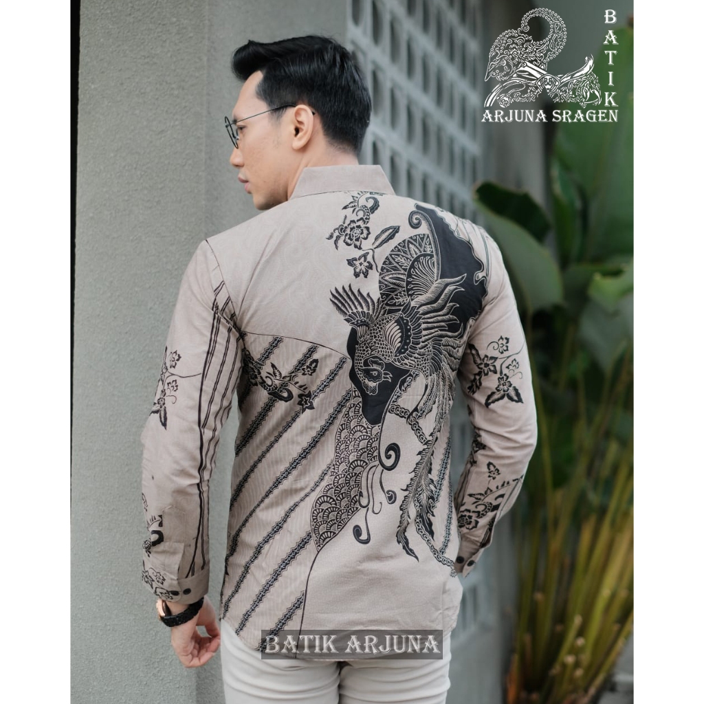 [Mall] kemeja batik pria baju atasan lengan panjang modern slim fit kasual dan kerja cowok hem coklat
