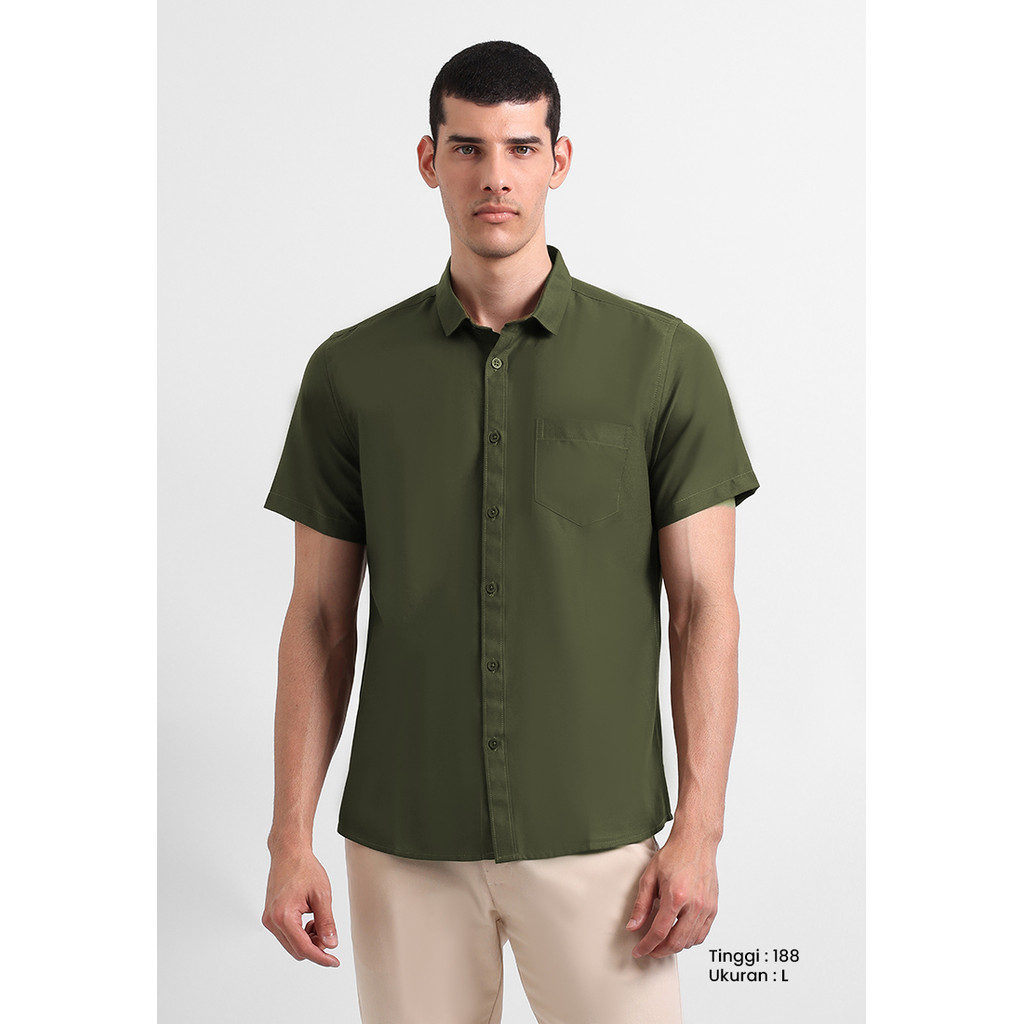 [Mall] Manzone Kemeja Lengan Pendek Pria Slim Fit Kobe - Olive