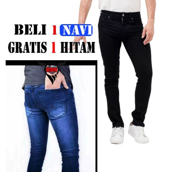[Mall] - Celana Jeans Pria Slim Fit Stretch Panjang Promo Termurah Akhir Bulan Beli 1 Gratis 1]