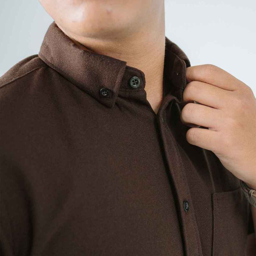 [Mall] Loku Kemeja Pria Lengan Pendek Cokelat | Pique Shirt Slim Fit Brown